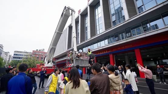 在消防员的演示和帮助下,小朋友们登上消防车,参观和体验了消防车内部设施,换上帅气的消防员服装,和消防器材装备近距离接触,体验使用水枪灭火,让他们大开眼见的同时,又能体会到消防员叔叔救援的辛苦和伟大。有位男生更是大声说道:“我长大后也想当消防员,保卫人们的生命安全!”