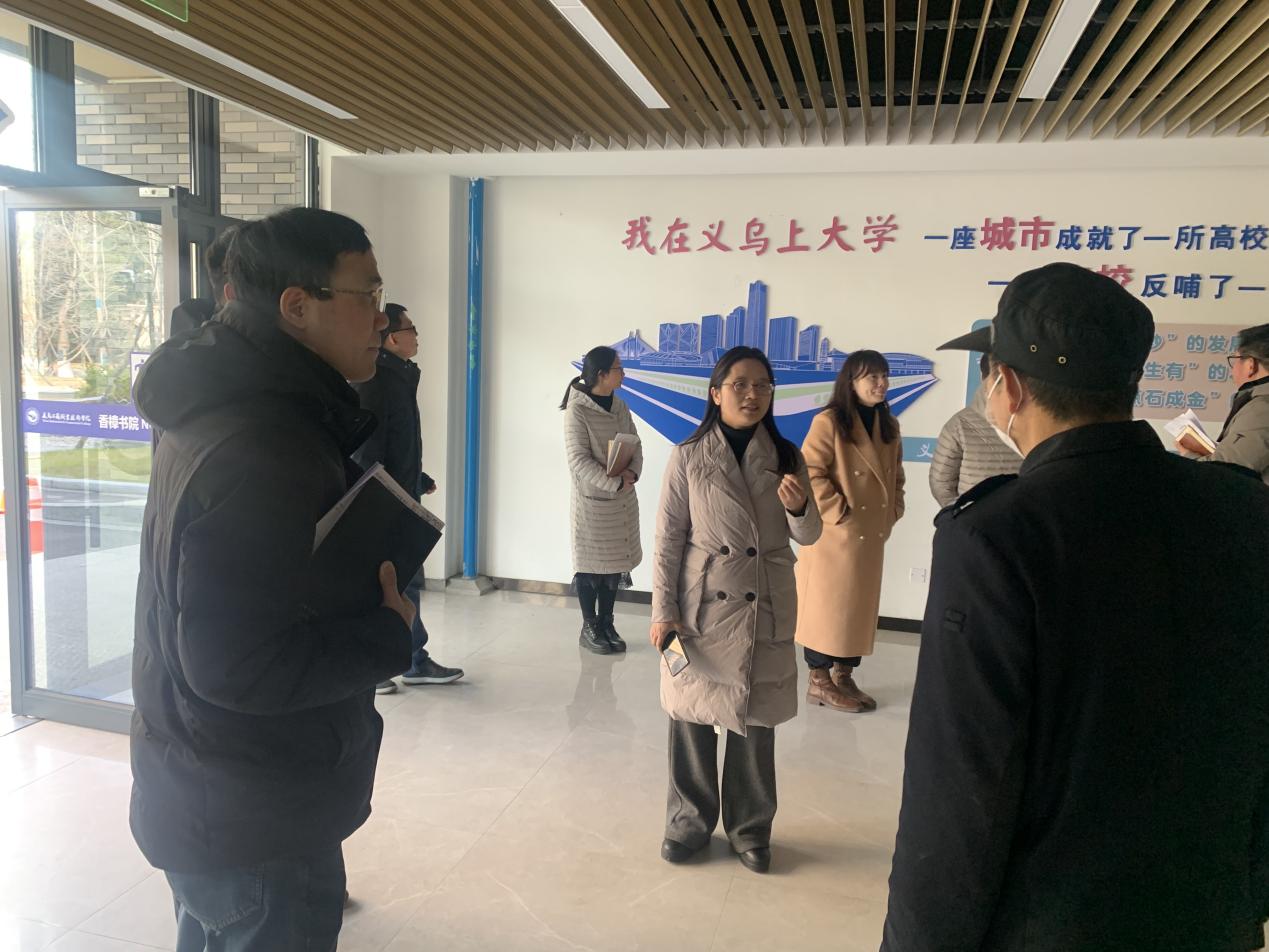 徐美燕、吕华一行先后检查了图书馆、医务室、正大门、国际交流中心、香樟书院公寓楼、天桥、体育馆(快递站)、创业园等场所,对安全隐患进行现场排查。在图书馆仔细询问了图书馆气体灭火装置施工进展,要求文明安全施工;在正大门查阅了进出人员申请报备记录,要求寒假期间加强巡逻频次;在国际交流中心,询问了留学生假期管理情况,要做好关怀与关爱,营造“中国年”的氛围。