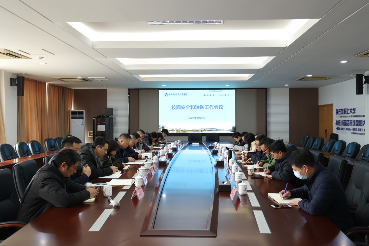 为传达上级安全会议精神,推进校园安全工作,加强校园消防安全,1月26日上午,学校召开校园安全和消防工作会议。校领导马广、徐美燕、樊曜出席会议,相关职能部门负责人和各二级学院党组织负责人参加会议。