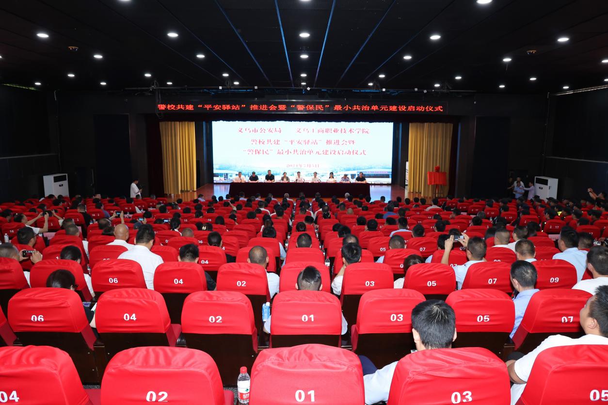 7月5日,为进一步深化平安校园共建机制和创新“平安驿站”联动品牌,打造高水平、高效率的警校联动防控体系,学校联合义乌市公安局举办警校共建“平安驿站”推进会暨“警保民”最小共治单元建设启动仪式。义乌市副市长、公安局局长宋寅寨,校党委书记李昌祖,江东街道党工委副书记、办事处主任傅凤丽,市委政法委副书记吴媛波,市教育局党委委员、副局长龚勤勇,市公安局党委委员、副局长鲍志宏,市住建局党组成员丁杰,市卫健局党委委员方才宝出席会议,义乌市公安局相关部门负责人,全市教育系统、卫健系统、物业公司、灿烂烟花公司、规上企业等相关领导,学校相关职能部门及各二级学院党组织负责人参加活动。活动由校党委委员、副院长樊曜主持。