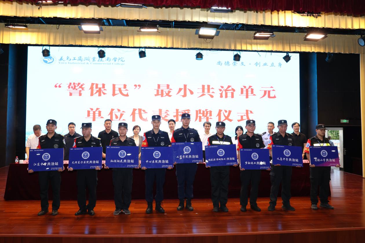 在全场的共同见证下,宋寅寨与李昌祖共同为“警保民”最小共治单元“工商学院共治站”揭牌;与会领导共同为义乌工商职院、义乌市中心医院、义乌中学、义乌灿烂烟花公司等9家“警保民共治站”单位代表授牌。义乌市“警保民”最小共治单元建设工作的正式启动,将有效助力完善社会治理体系,进一步加快形成人人参与、齐抓共管、综合治理的“大安全”格局。