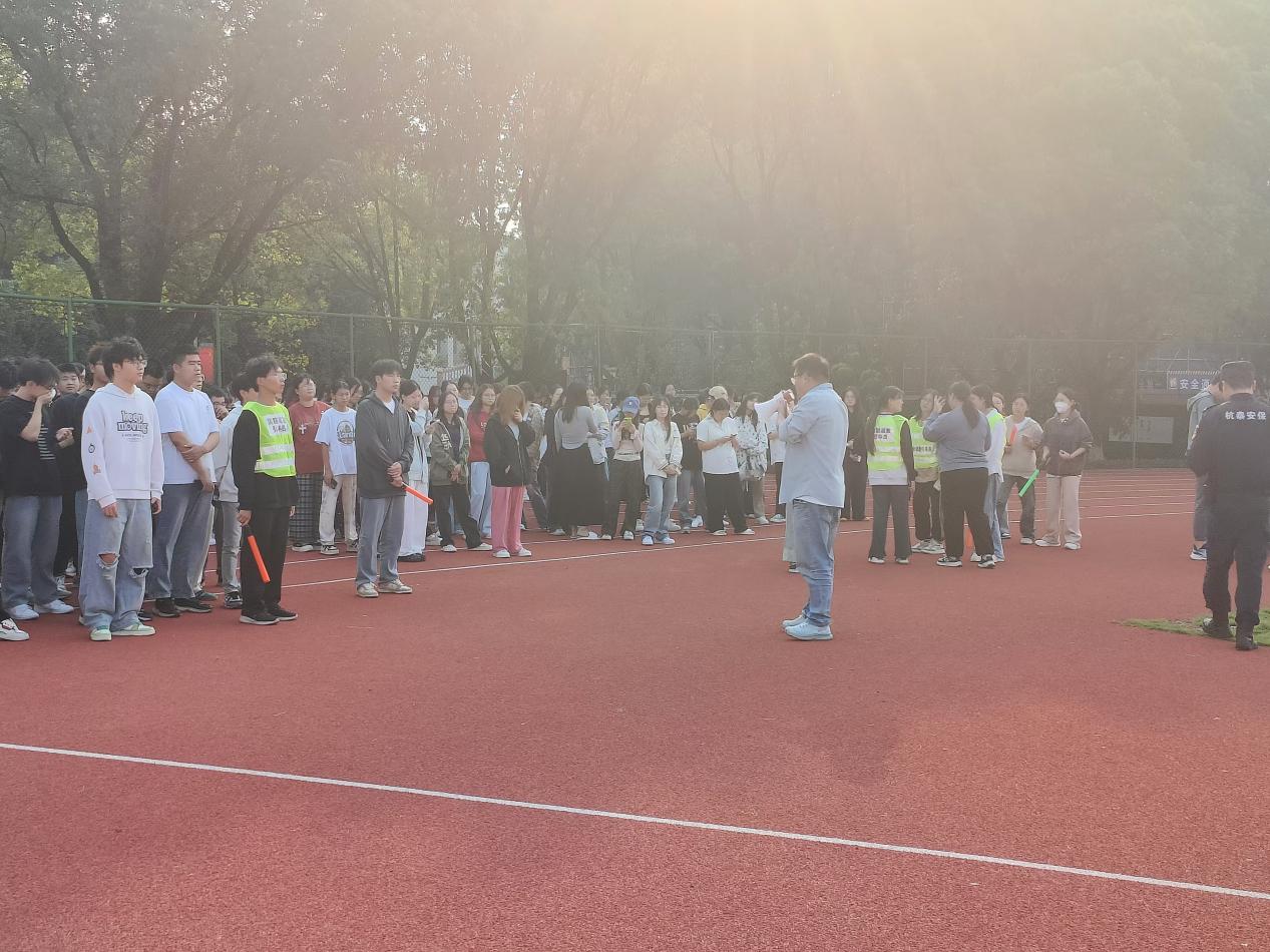 本次消防演练模拟火灾浓烟环境,学生们用湿毛巾捂住口鼻,弯腰扶墙,有序下楼。宿舍内全部人员疏散至湖畔操场后,指导员老师对本次活动表现进行回顾,并讲解逃生重点和技巧。