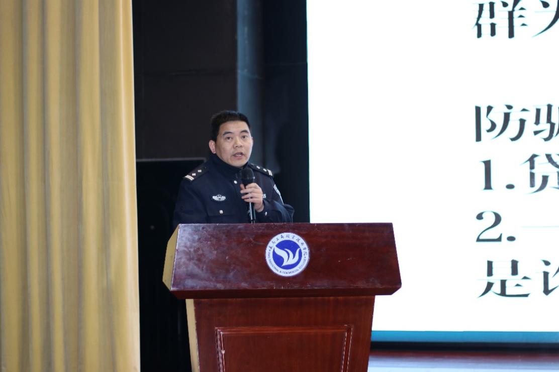 王军伟警官围绕宣传防范网络电信诈骗展开讲解。他从校园常见的兼职刷单类、网络贷款类、投资理财类、购物快递类、冒充好友类、游戏交易类、冒充公检法类等几大诈骗行为入手,分析了犯罪分子的作案手段和心理特点,教导师生如何提高自我防范意识,保护自身财物安全。王警官还强调了防诈“五个不要”,呼吁师生谨防诈骗,遇到问题第一时间联系结对校园民警。