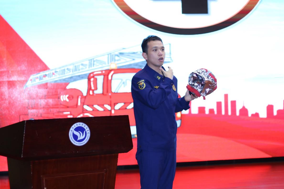 谢中政消防士以近年来发生的典型火灾案例为切入点,深入浅出地讲解了火灾的危险性、预防火灾的重要性以及火灾发生时的正确逃生方法。他详细介绍了各类消防器材的使用方法,并结合校园实际,强调了宿舍、实验室等重点区域的防火注意事项,提醒师生时刻保持警惕,杜绝火灾隐患。生动的案例、实用的知识,让在场师生对消防安全有了更为深刻的认识。