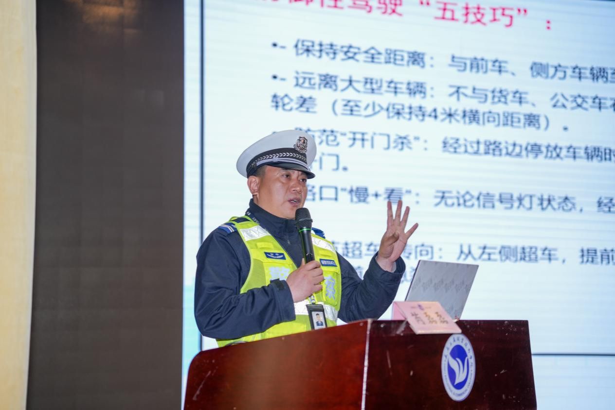 芮磊磊宣教员围绕校园交通安全展开讲解,明确电动自行车、电动轻便摩托车、电动摩托车的分类及准驾要求,警示准驾不符、驾驶淘汰车辆等违规行为的处罚后果。同时讲解头盔规范佩戴方法、“荷氏开门法”等实用技能,普及交通事故应急处理流程与通行优先原则,公布校内交通安全求助专线,倡导文明出行。